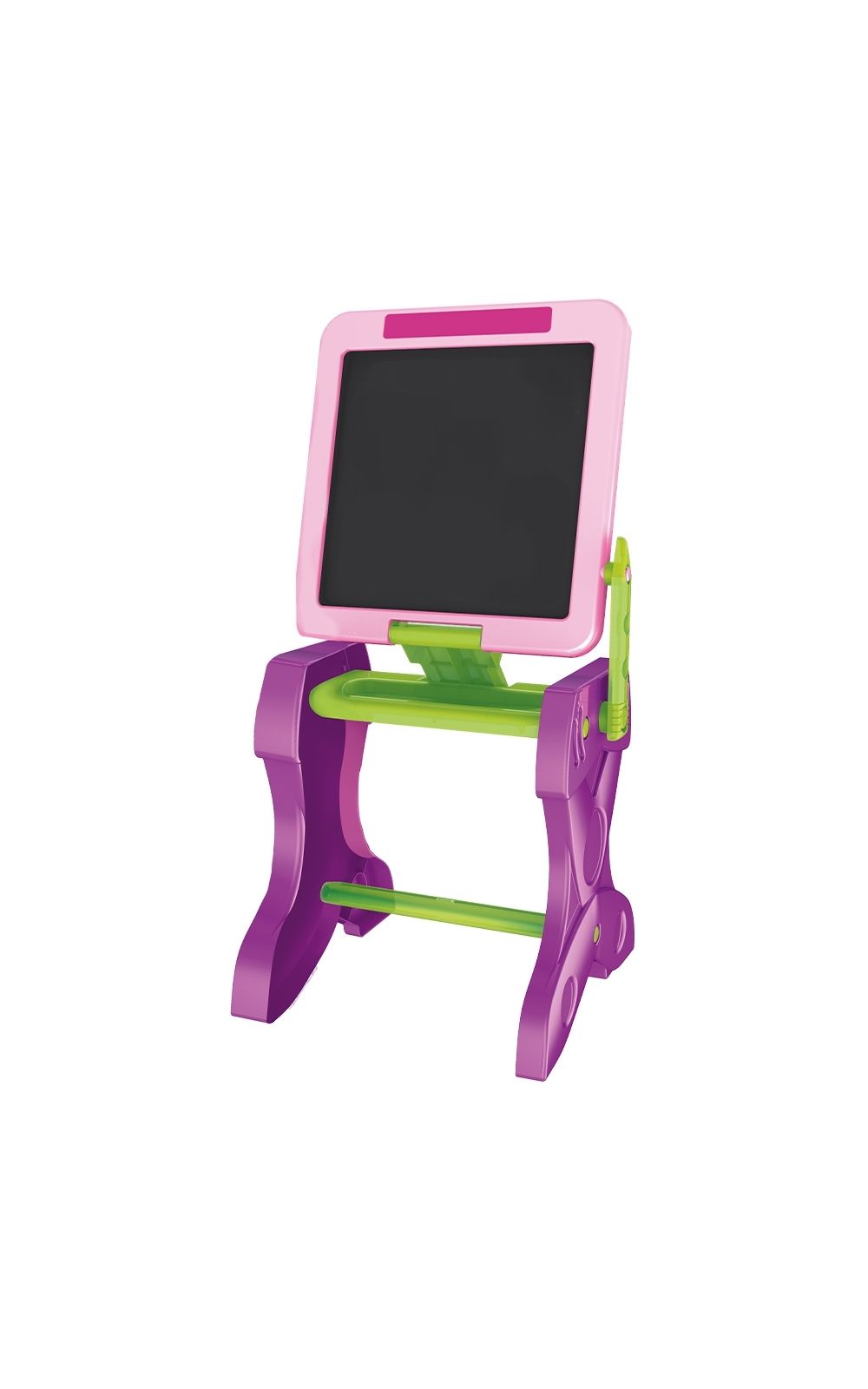 Esta mesa versátil se transforma facilmente em uma lousa, com a opção de quadro branco ou negro, permitindo que as crianças desenhem, escrevam e explorem sua criatividade de diversas maneiras.