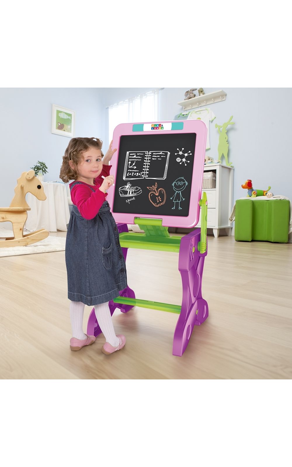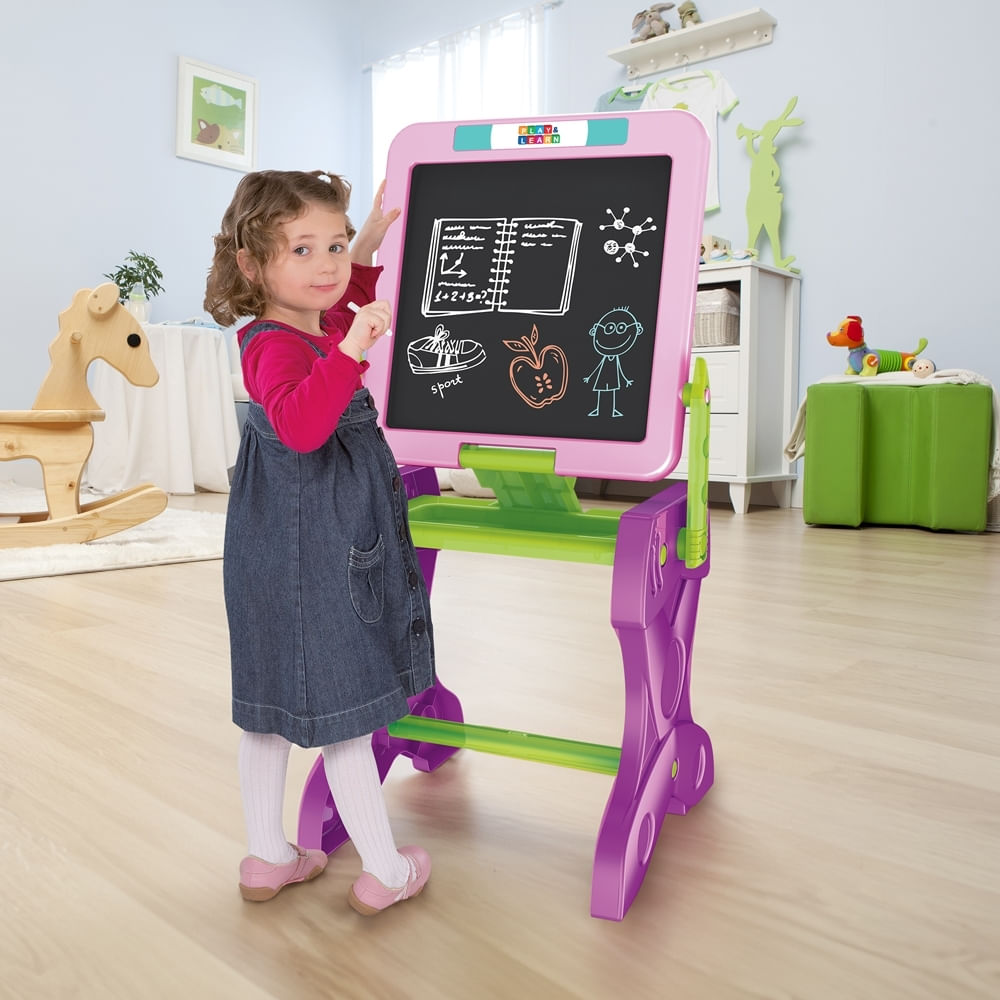 Para usar pela primeira vez, basta seguir as instruções de montagem, escolher entre o quadro branco ou negro, e deixar que a imaginação da criança flua. A Mesa 2 em 1 Play & Learn é uma maneira interativa e divertida de aprender, desenvolver habilidades e crescer!