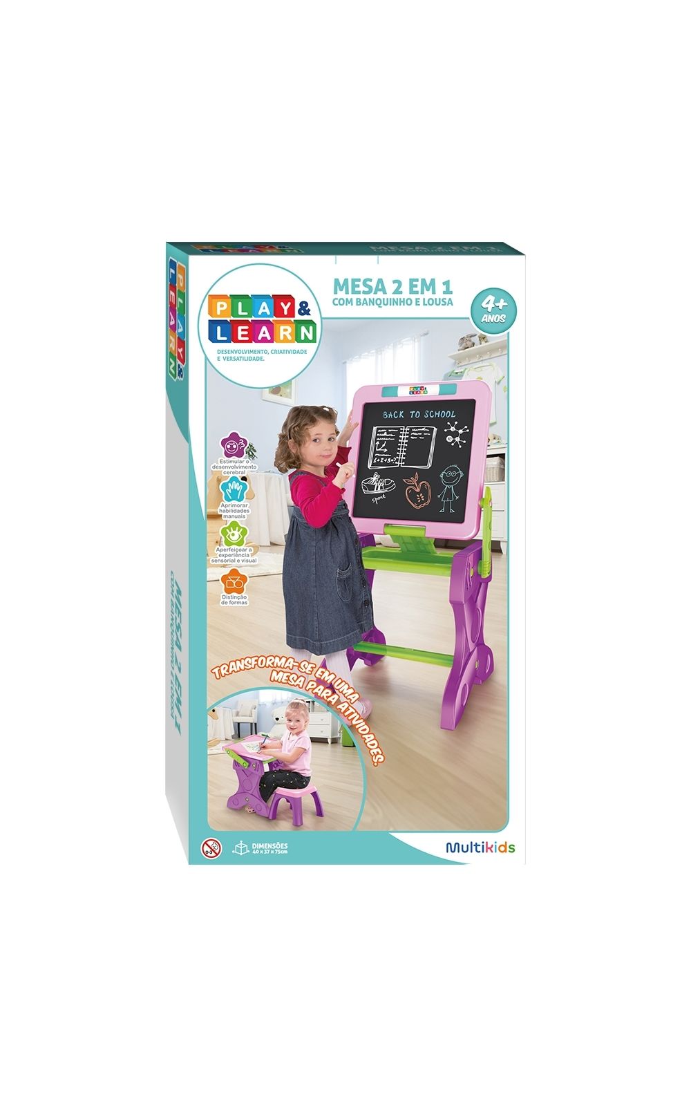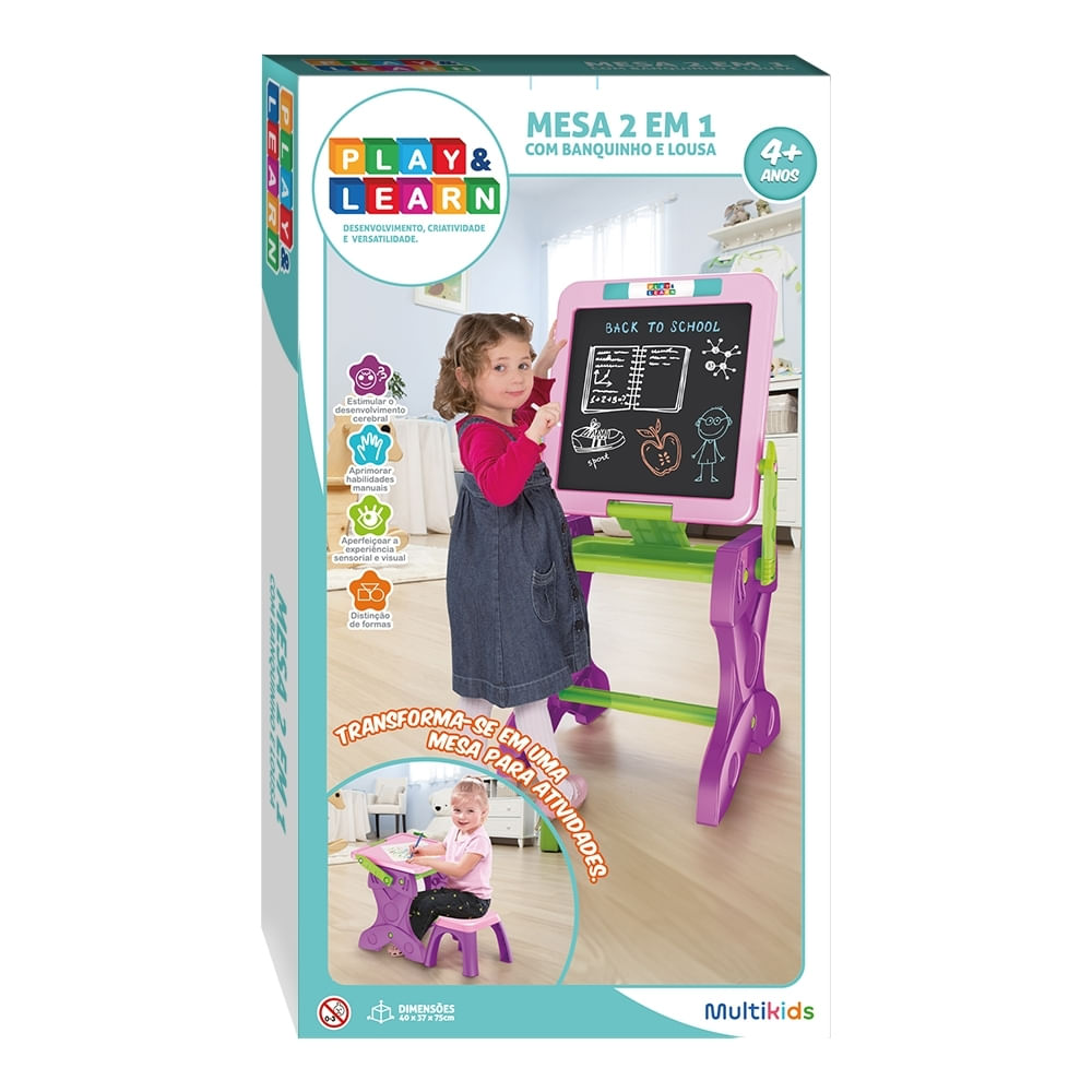 A Mesa de Atividades Infantil 2 em 1 Play & Learn é ideal para crianças a partir de 4 anos que desejam aprender e se divertir ao mesmo tempo.