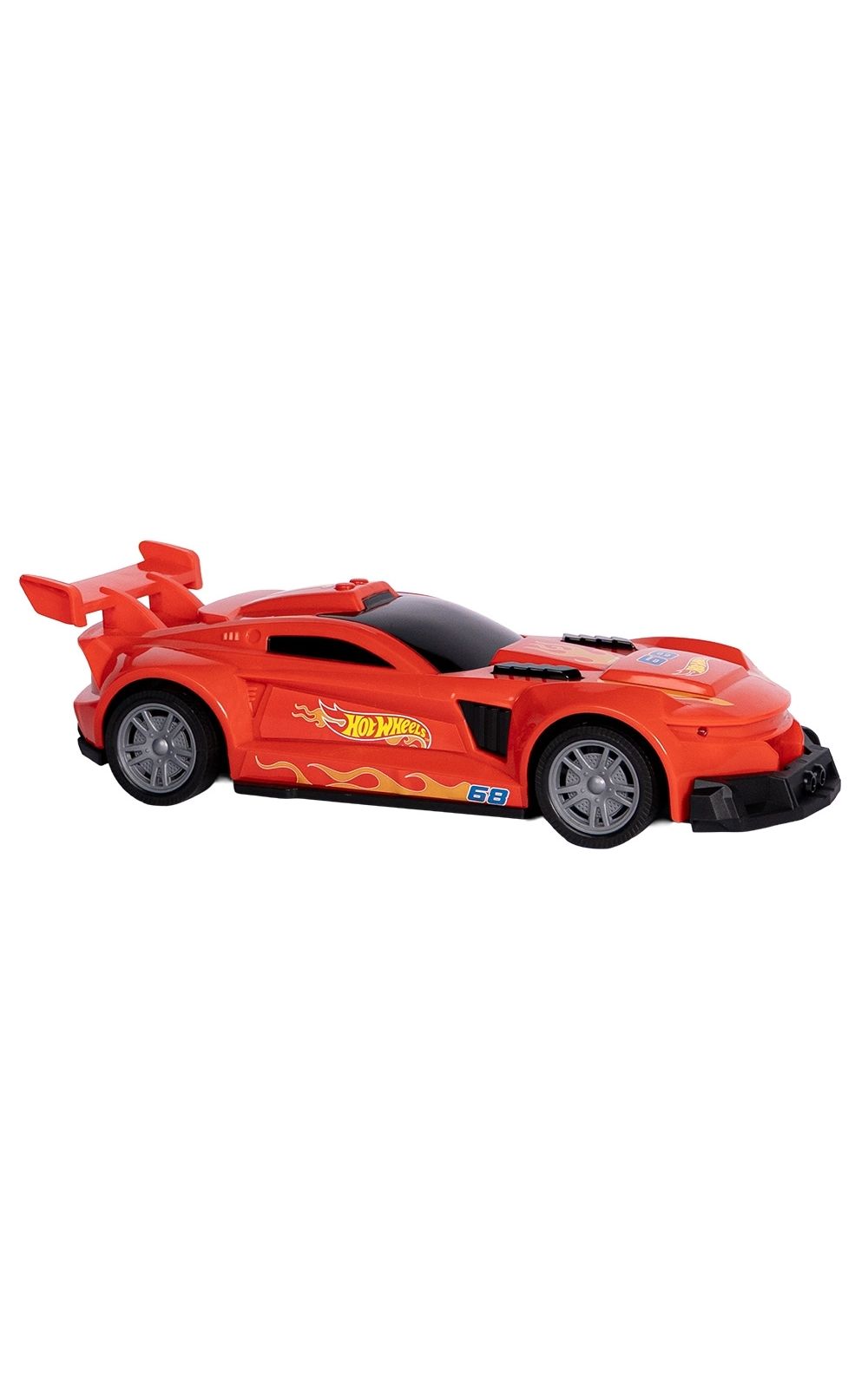 Possui design super estiloso, 100% personalizado Hot Wheels, com faróis que acendem como um carro de verdade.