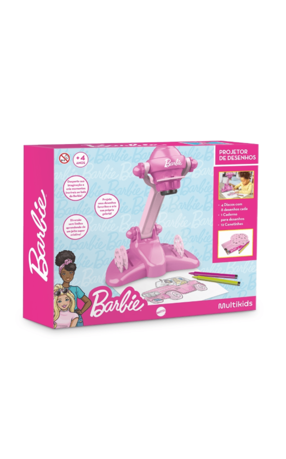 Com 4 discos e 32 desenhos no total, ele permite que as crianças projetem imagens da Barbie, estimulando a imaginação e o desenvolvimento artístico.