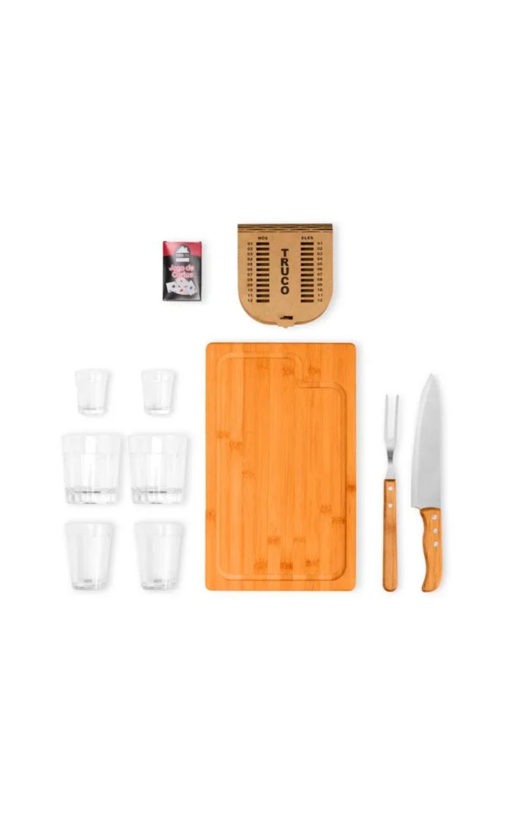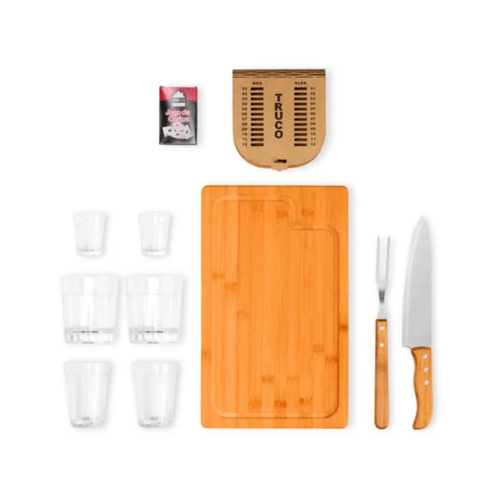 O KIT CHURRASCO, DRINK E TRUCO Welf de 10 peças é a solução ideal para suas confraternizações. Este conjunto versátil oferece tudo para preparo, serviço e entretenimento, perfeito para amantes de churrasco e encontros sociais. Inclui uma tábua em bambu,