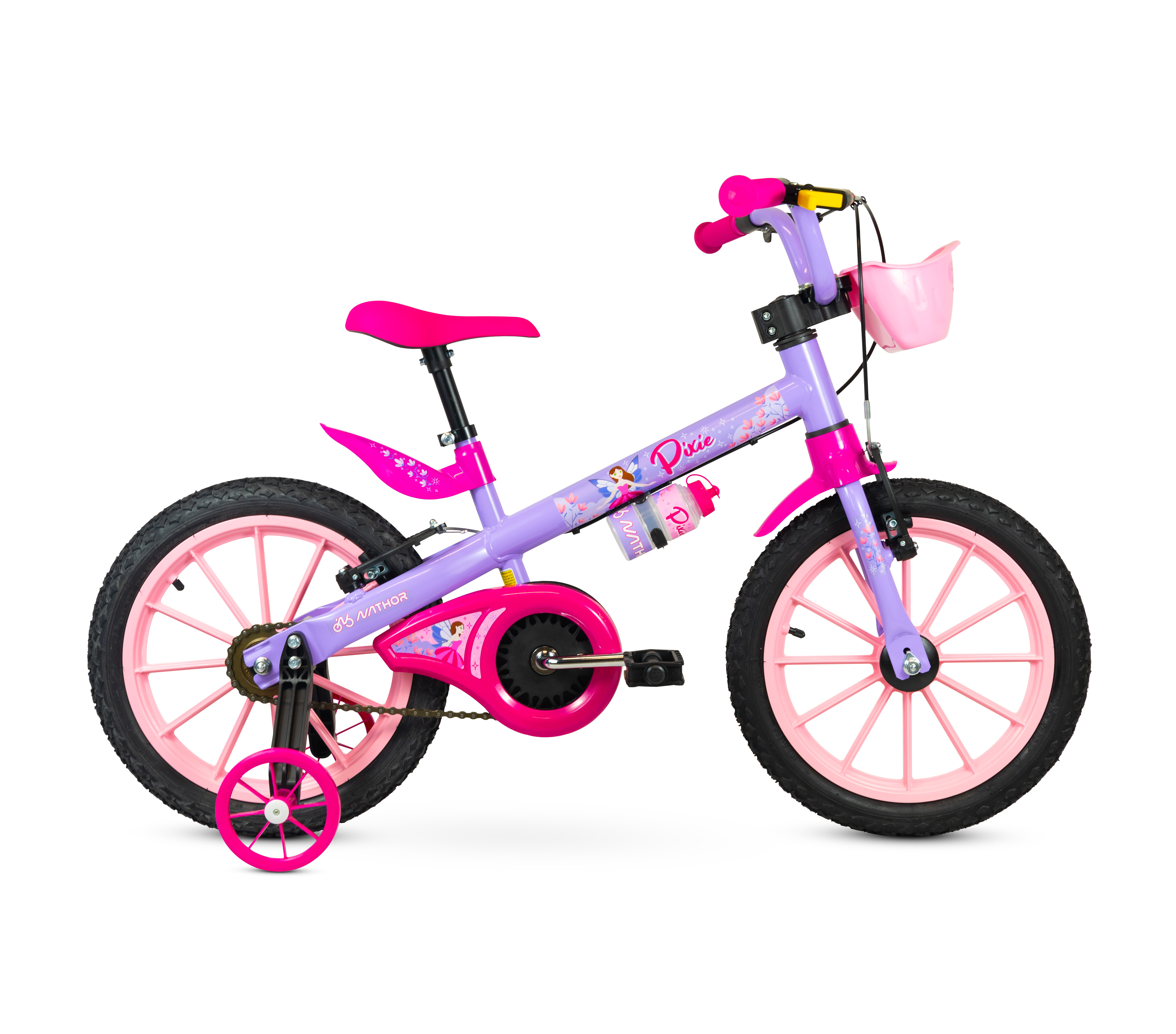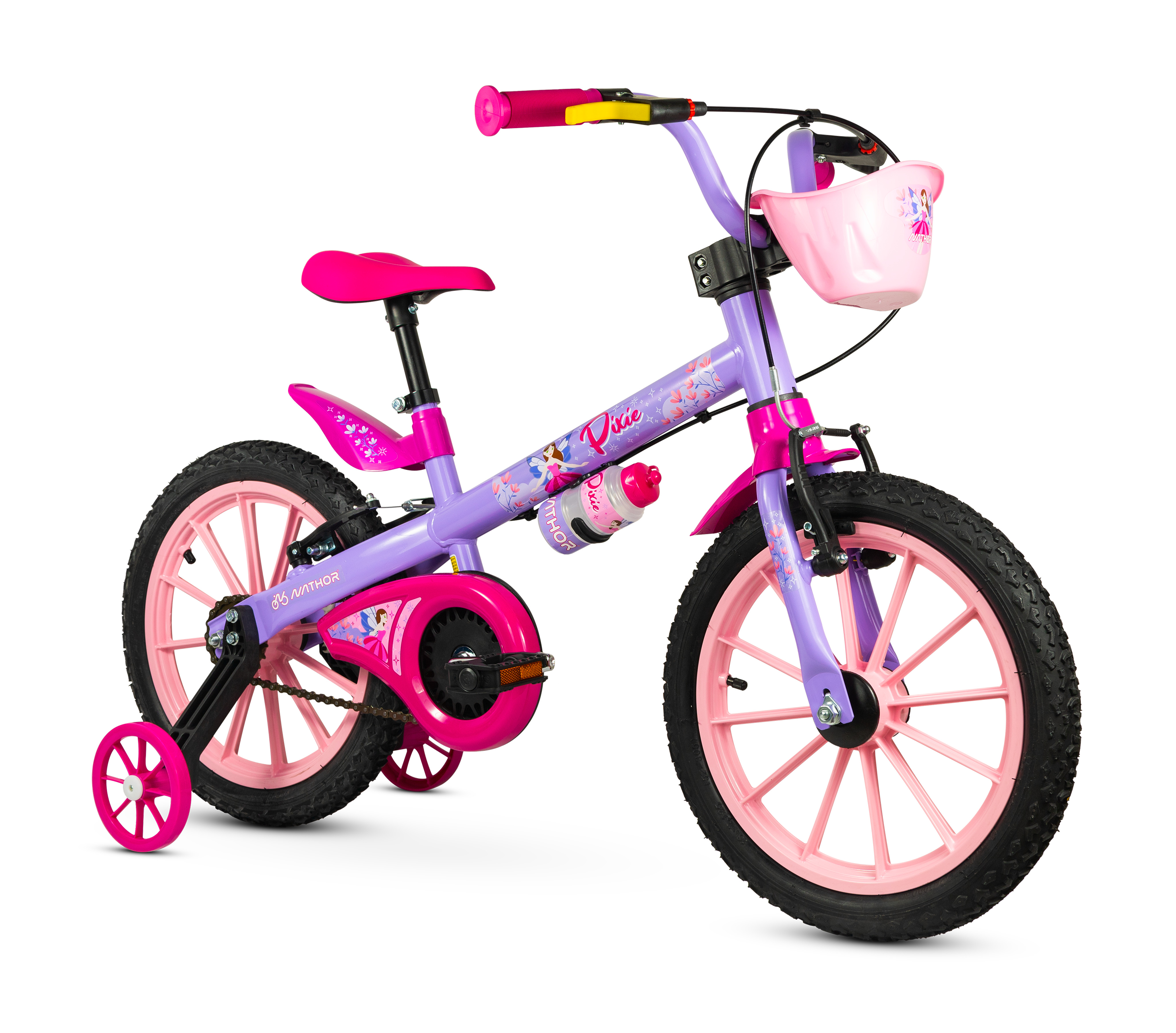A Bicicleta Infantil Nathor Pixie Aro 16 é projetada para crianças a partir de 5 anos, com altura entre 1,10 m e 1,20 m, oferecendo uma experiência de pedalada segura e adaptá
