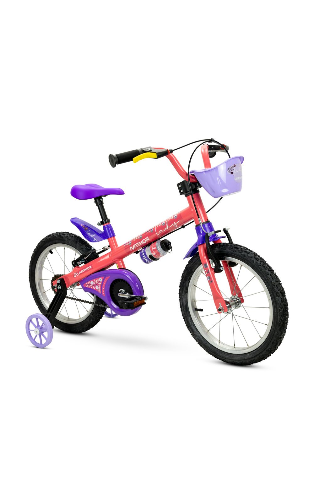A Bicicleta Nathor Lady Aro 16 é desenvolvida para crianças a partir de 5 anos, com altura entre 1,10 m e 1,20 m. Sua estrutura em aço carbono oferece resistência, enquanto os aro