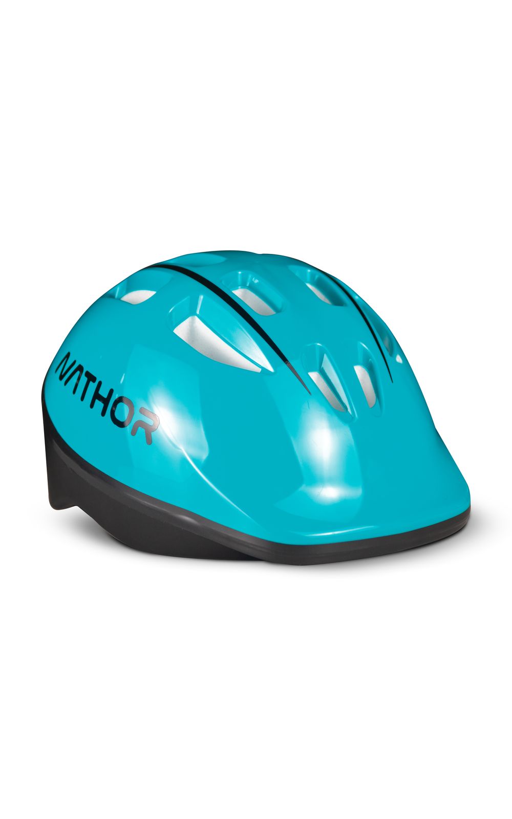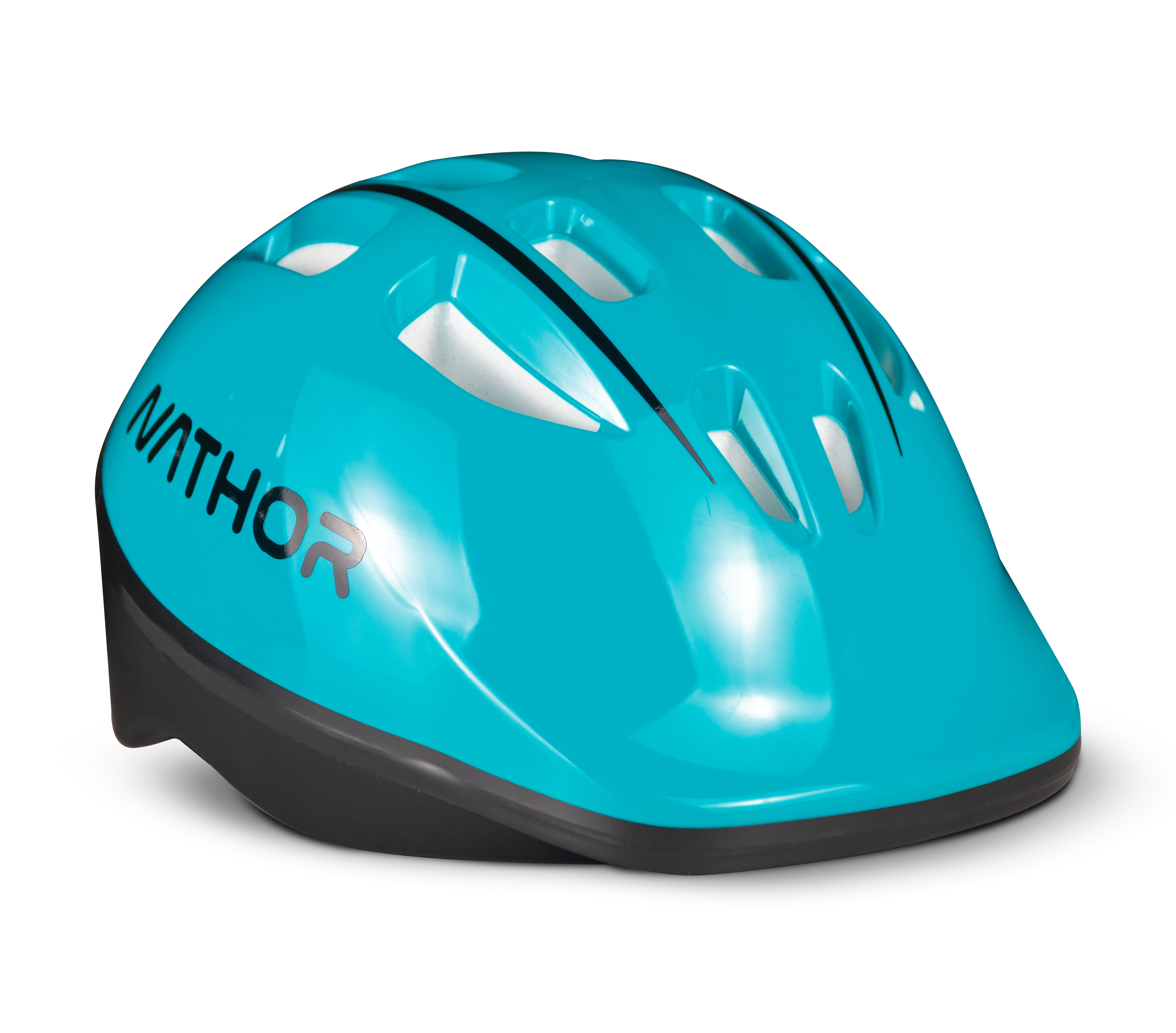 O Capacete Infantil Nathor na cor Turquesa com Preto é desenvolvido para oferecer proteção durante atividades recreativas. Sua construção utiliza poliprop