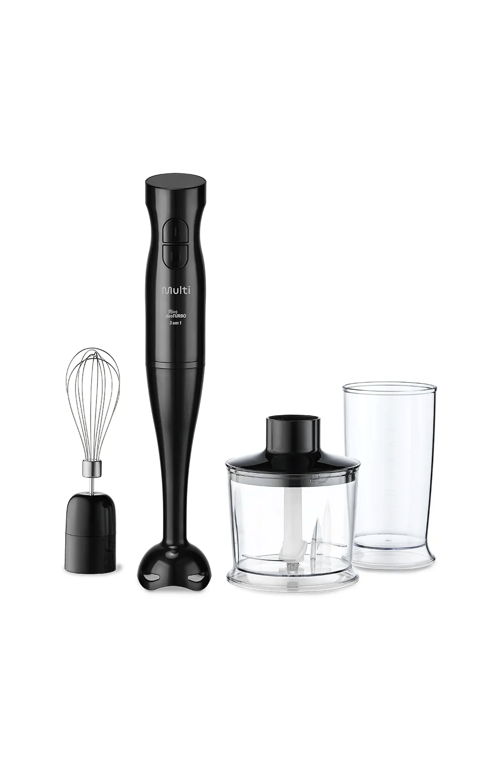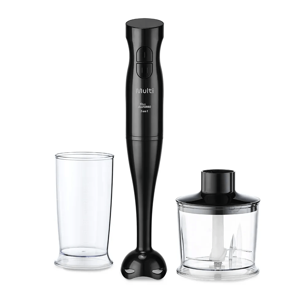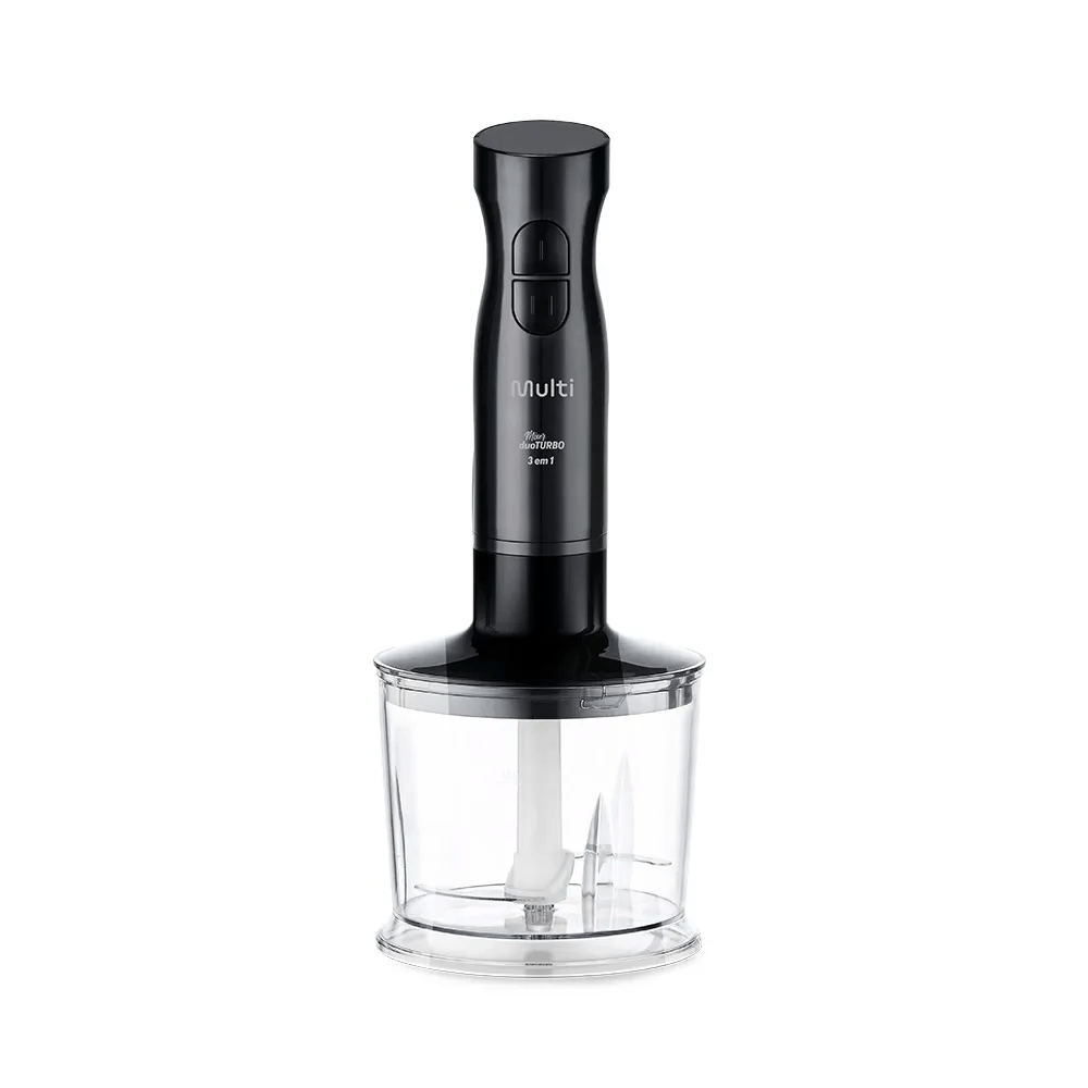 Com 200W de potência e 2 velocidades (Duo Turbo), ele oferece controle total para misturar, bater e processar alimentos com precisão.