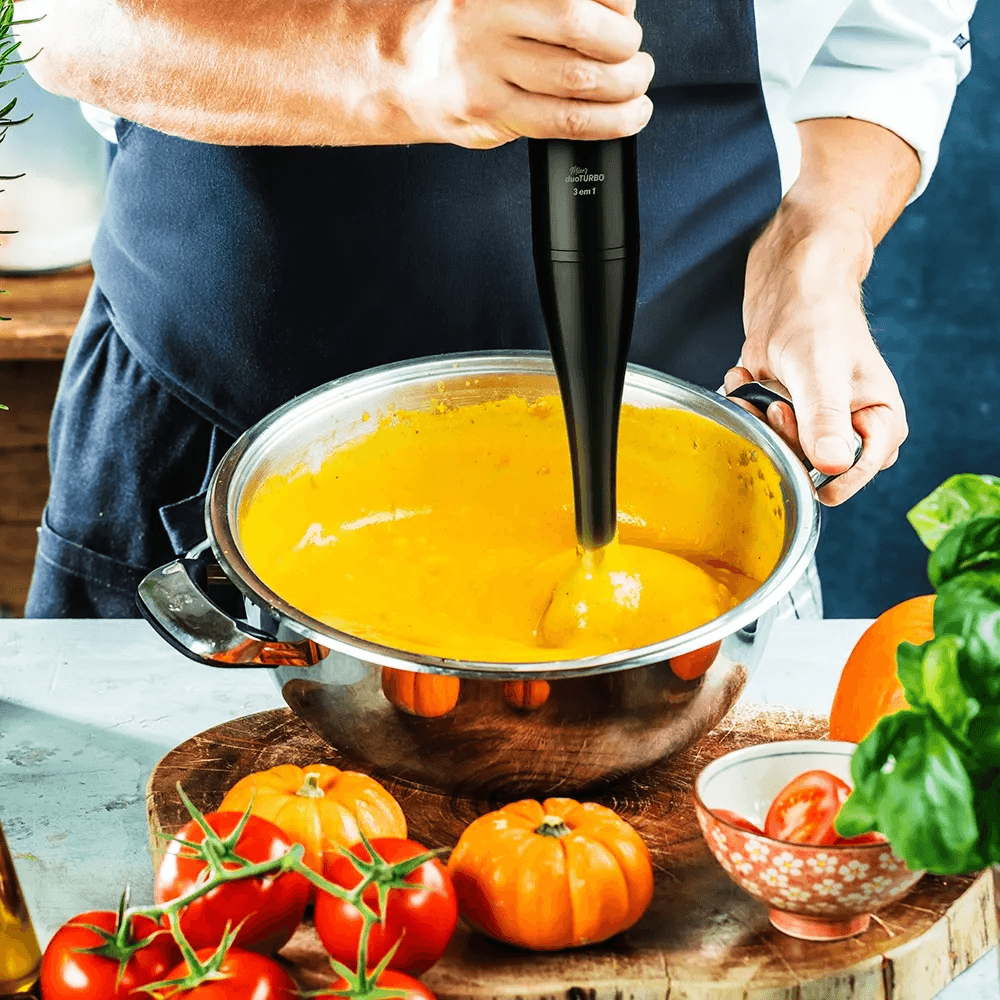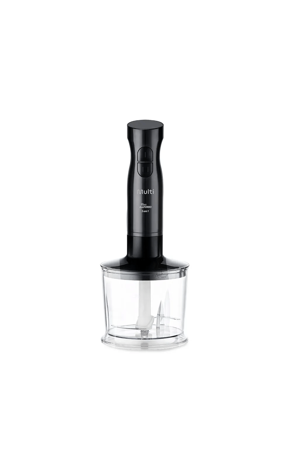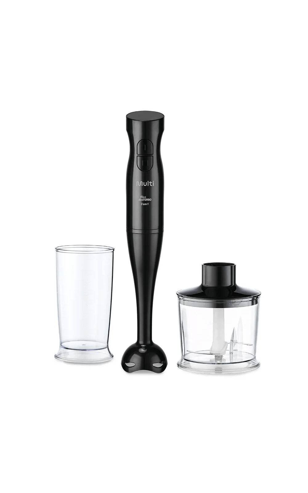 Com 200W de potência e 2 velocidades (Duo Turbo), ele oferece controle total para misturar, bater e processar alimentos com precisão.