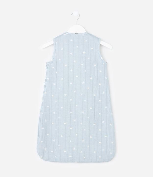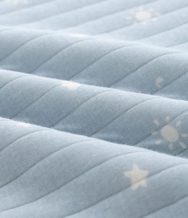 Saco de dormir infantil confeccionado em algodão matelassado, com superfície acolchoada e toque suave para proporcionar aconchego durante o sono. Possui abertura por botões nos ombros, sem mangas e estampa fullprint delicada. Confeccionado em algodão certificado BCI.
