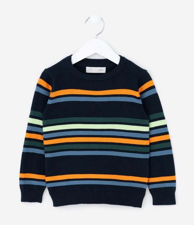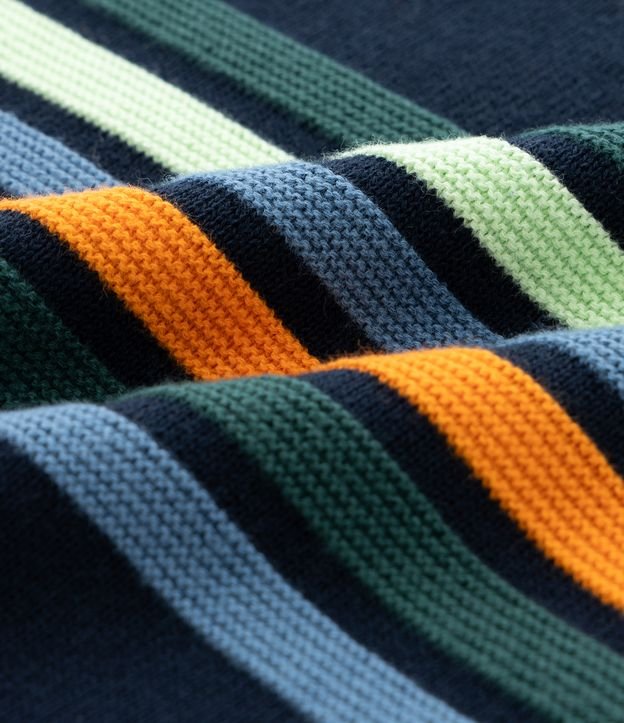 Casaco infantil em tricô leve, confeccionado em algodão certificado BCI. Possui gola redonda, mangas longas, superfície texturizada e listras em relevo por toda a peça, criando visual moderno, confortável e perfeito para compor looks casuais.