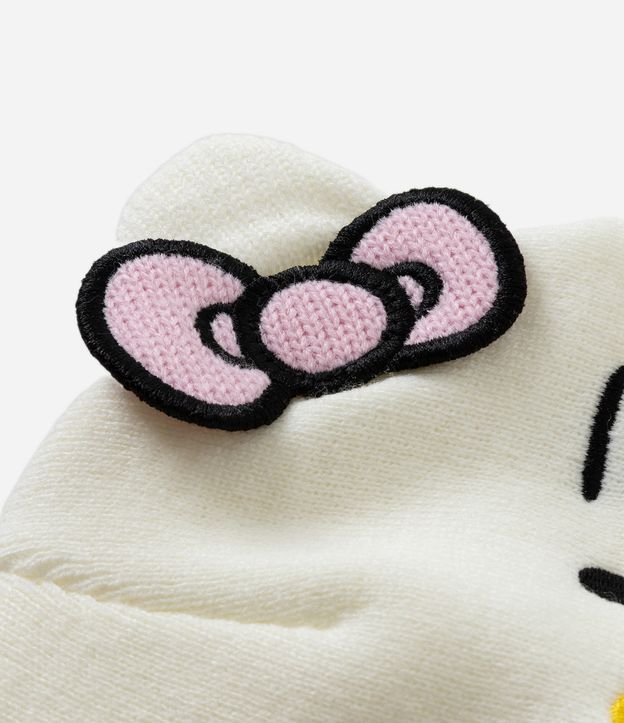 Gorro infantil confeccionado em tricô leve com toque macio e estrutura maleável, trazendo rosto da Hello Kitty bordado na parte frontal, laço aplicado e orelhas 3D que reforçam o visual divertido. Acabamento dobrado proporciona melhor ajuste e proteção nos dias frios.