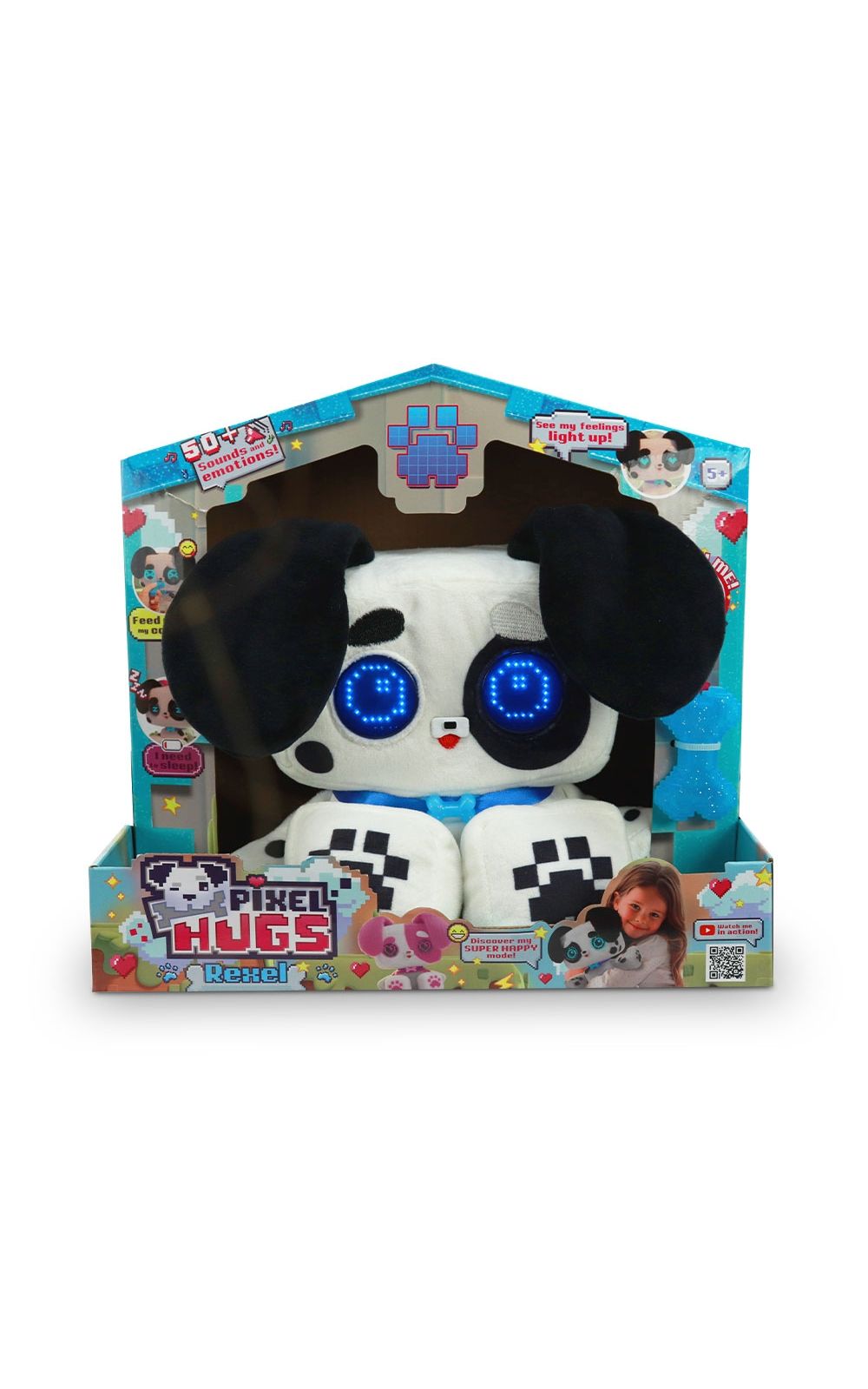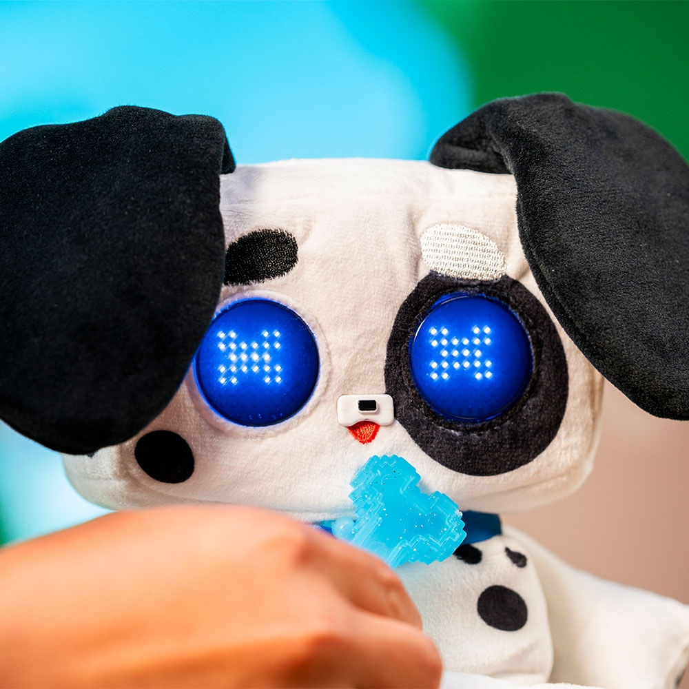 Com olhinhos de LED que mudam de expressão e mais de 50 sons e emoções diferentes, ele se comunica, reage, e traz vida à brincadeira com um jeitinho único.