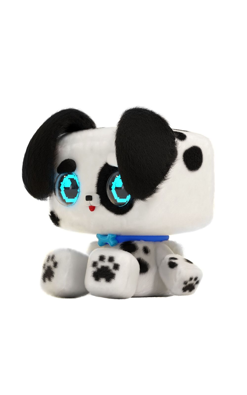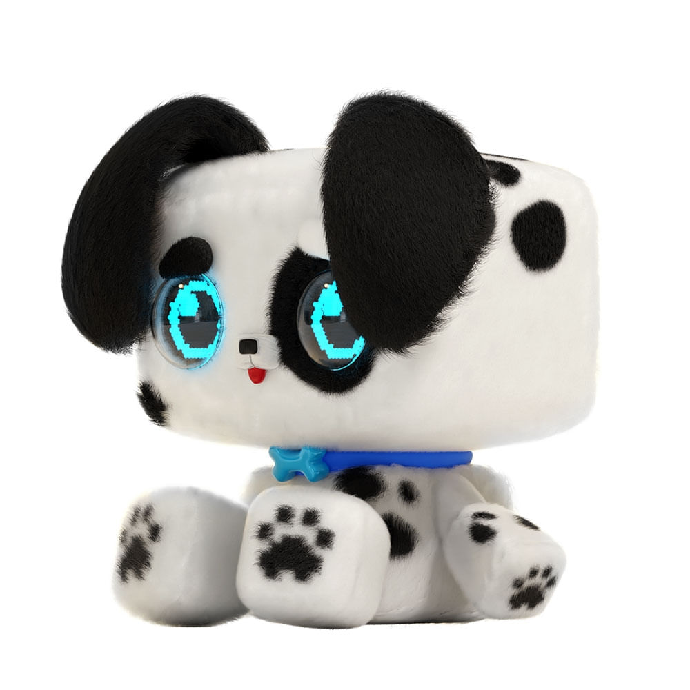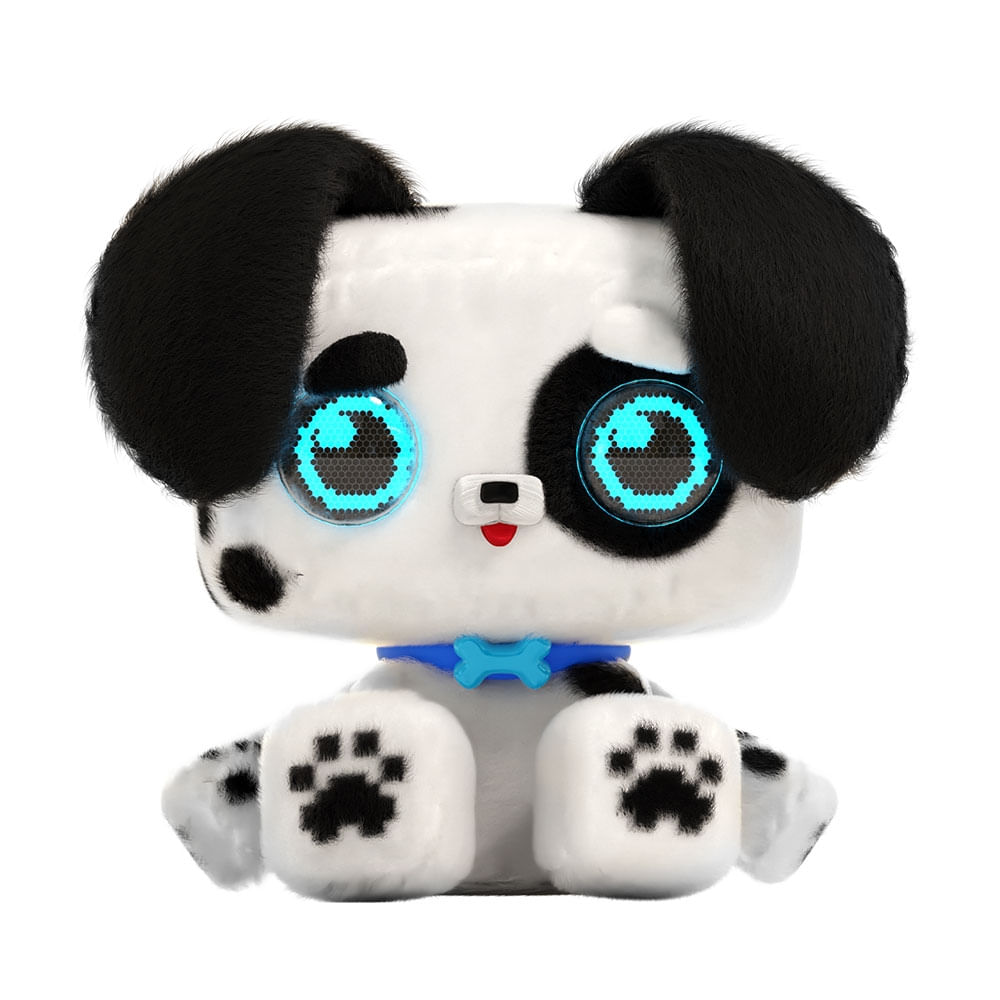As orelhas caidinhas, o corpinho macio e os detalhes em estilo pixelado tornam esse cachorrinho uma mistura per